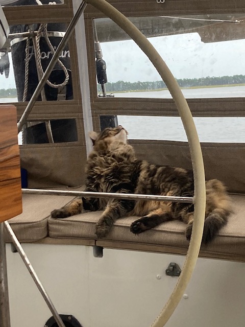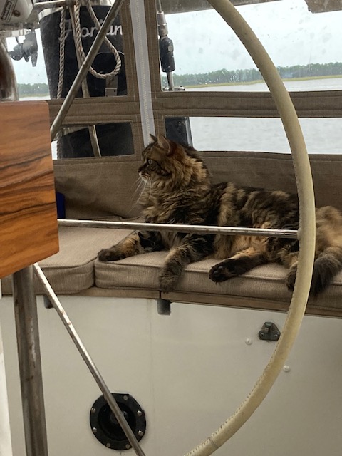We finally anchored at Pine Island for the night and Schizzi began the evening routine of preparing himself for bed.