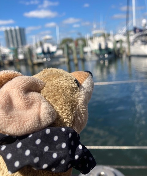 Then Wolfie watches the boats go by…and wonders where we’re taking him.