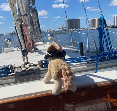 But Claudio and I are not alone on this trip north; we have a guest on board. Meet Wolfie!
