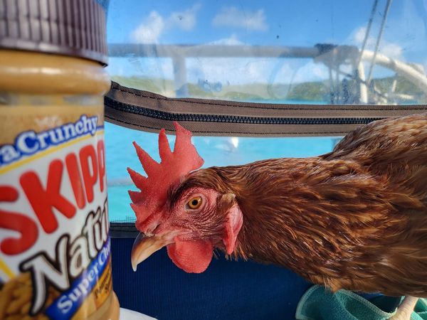 Nancy ci ha spiegato che ha allevato Penny da pulcino a bordo della barca e che le ha fornisce un uovo al giorno. Nancy ha portato Penny fino alle Bahamas. Ci ha spiegato che mette Penny sul gommone e la porta a terra. Penny non cerca mai di scappare, ed è diventata una compagna di navigazione per Nancy, e apprezza averla a bordo.