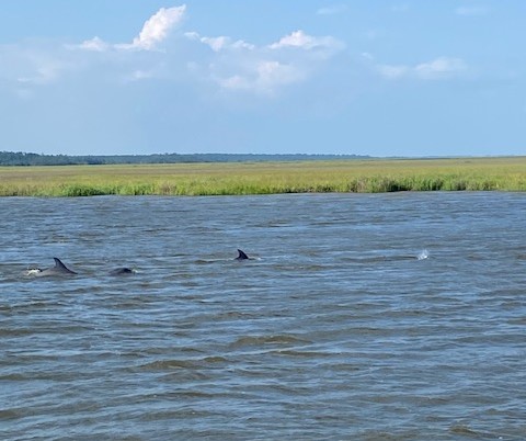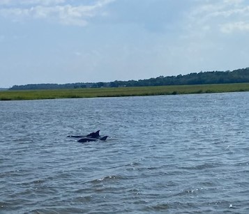 That afternoon we spent a lot of time searching for a good, protected anchorage area. We found Kilkenny Creek where supposedly there was a low-key marina but a pretty good seafood restaurant. The marina never answered their radio (or phone) and the restaurant only opens from Wednesday through Sunday…and we got there on a Tuesday. However, I was VERY HAPPY that we did not go to the marina because the experience we had anchored on the creek was an amazing spectacle. Dolphins, in the dozens, came into the creek…they were feeding and they were EVERYWHERE!!!!