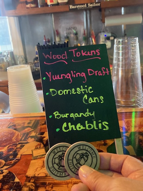 When you come into Beaufort Town Dock, they hand you two button-shaped corks. If you take those to the dock bar, they give you two free beers or two free glasses of wine! We still had two from the previous visit to Beaufort (while heading South) which we never used. They were so cute, I left them on the nav station and forgot about them. I showed the dockmaster the original two I had onboard….he told me to keep them. He said they never expire. He told me that people have shown up with them 20 years later to claim their free beer!