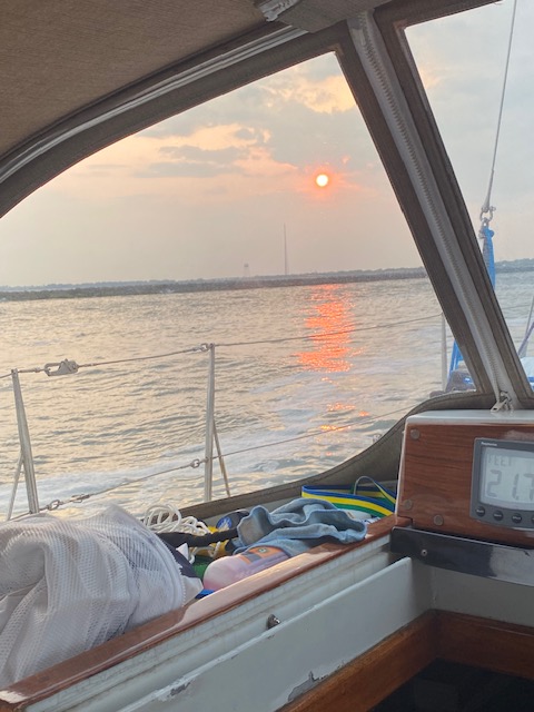 A causa del ritardo nel lasciare il molo questa mattina, inizialmente abbiamo deciso di ancorare sul fiume Cohansey nella baia di Delaware. Ma con la corrente ed il vento a favore, abbiamo cambiato idea e ci siamo indirizzato verso Cape May, New Jersey.