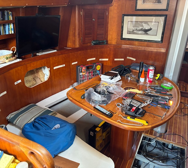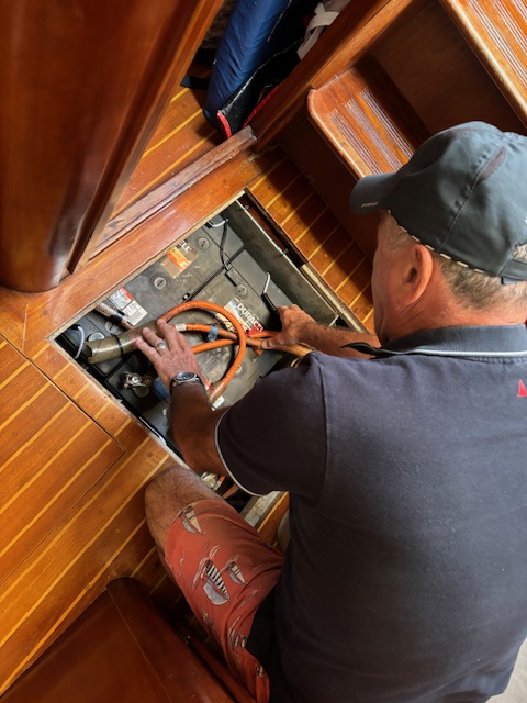 The water system fix and the replacement of the engine’s impeller was easy enough….except that it took Claudio half a day to accomplish because he had to access various areas of the boat to do it!