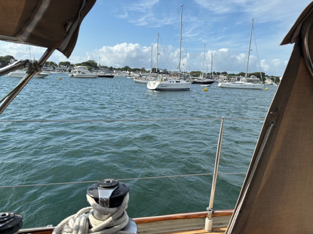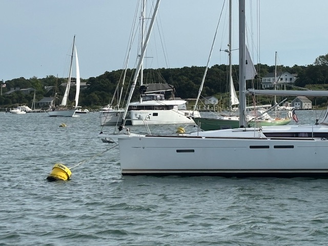 By the time we got to Edgartown on the Vineyard, the winds were settled enough that we could pick up a mooring without too much maneuvering.