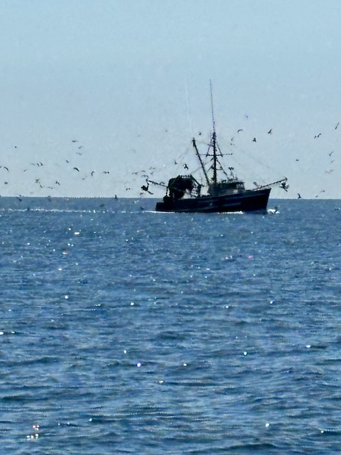 The seagulls didn’t seem to have an issue with winds or stepped seas….they were in the middle of a feeding frenzy and didn’t notice what was happening around them!