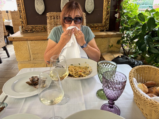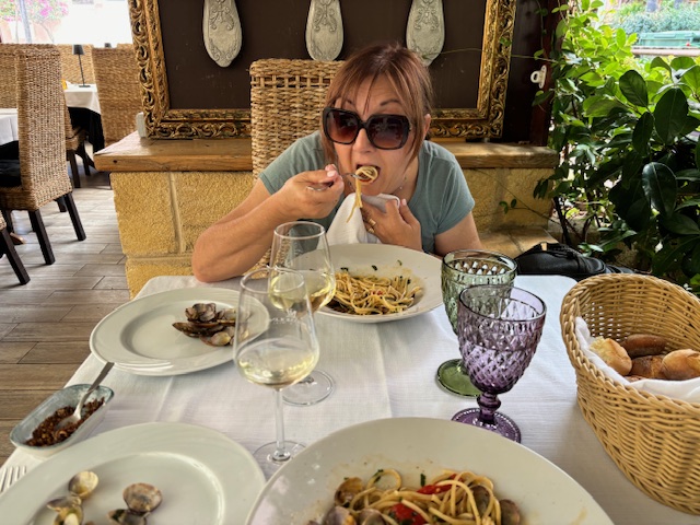 Today we are taking possession of the boat and having our briefing…but not until 18:00 hours. Therefore, we again woke up late, took a shower and checked out of our hotel room. After some further exploration of the area, we were told of a little place whose spaghetti and clam sauce are so good foodies come from far away to eat it! That’s all I had to hear!