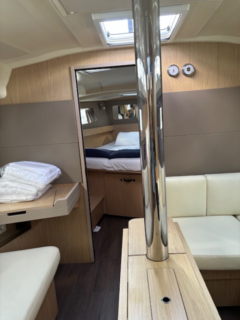 The vessel we selected is a 45′ Beneteau mono hull. It is a typical French, mass produced sailboat. It is made inexpensively but it offers a lot of interior and cockpit space…and it sails fairly well. They are designed to be used as charter vessels, and they are comfortable boats.