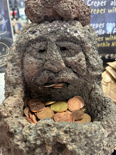 And of course, the god protector of Etna had to be appeased (with coin, of course!)….so I added a dime in his mouth. LOL