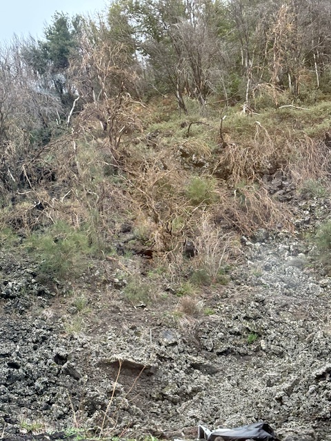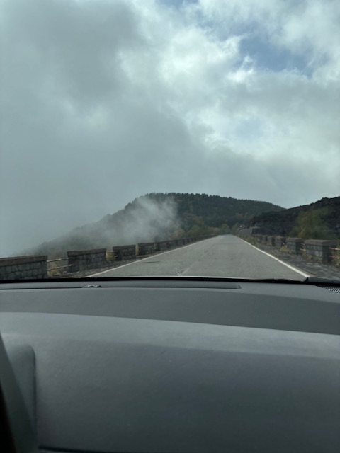 Etna has a south side that looks like the picture below….vegetation that can’t grow well in between the solidified lava flows. And then it has a north side which is lush and green! We could only get to the south side as the north side was immersed in thick fog. However, at the base of the north side we noticed an immense forest of chestnut trees!